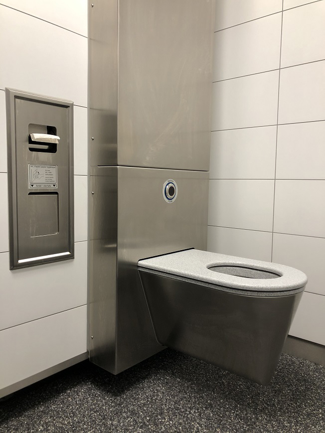 - Accessoires en inox (toilette, urinoir et table de toilette)